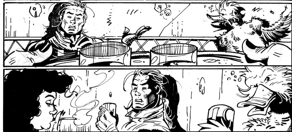 Work continues on GORILLA MY DREAMS TEAM-UP #2 Kickstarter. Samir has submitted page #16 this week, so we’re still making headway.