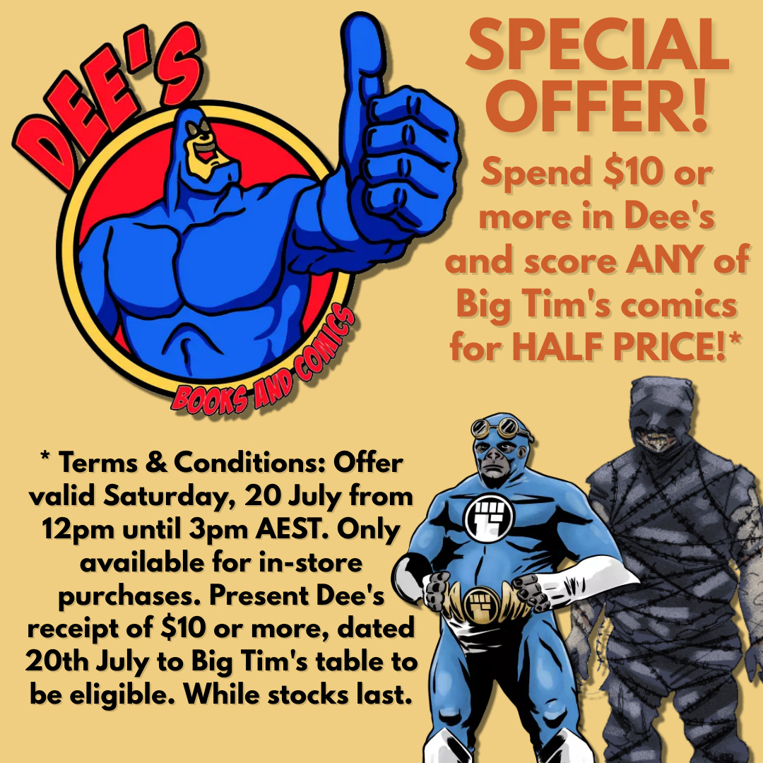Dee’s Comics is closing down. This is sad news for Canberra. Brendan and his team have been very big supporters of my comics from the very start. I have a pull list at Dee’s and visit every fortnight.